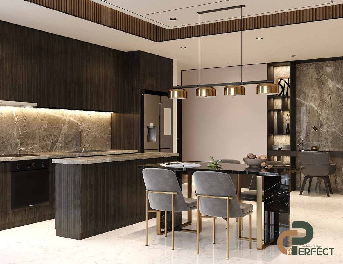 Hạng mục bếp đã được chủ đầu tư thi công nội thất và bàn giao lại. Đội ngũ thiết của Perfect Design đã kết hợp một cách hài hòa giữa không gian phòng bếp và các khu vực xung quanh.