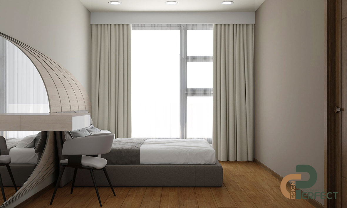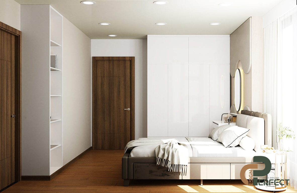Phòng ngủ master chắc chắn sẽ mang lại cảm giác nhẹ nhàng và thư giãn cho gia chủ khi nhà thiết kế của chúng tôi đã sử dụng các gam màu như be, trắng thích hợp cho không gian nghỉ ngơi. Không sử dụng quá nhiều đồ nội thất nhưng phòng ngủ vẫn đầy đủ tiện ích bởi Perfect Design chỉ lựa chọn những món đồ đa năng để trang bị cho không gian này, ví như chiếc gương đã được tích hợp thành đèn ngủ để tạo vẻ đẹp sang trọng mà lại rất ấm cúng.