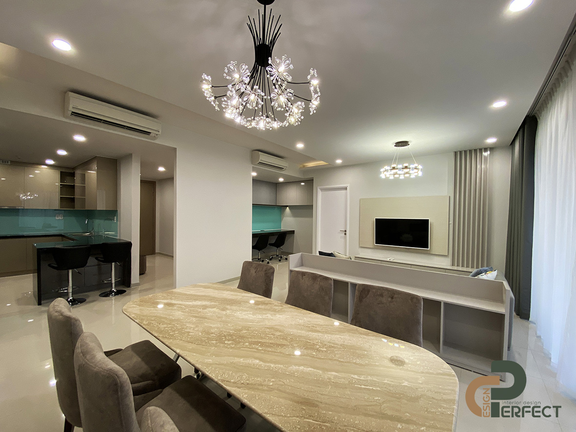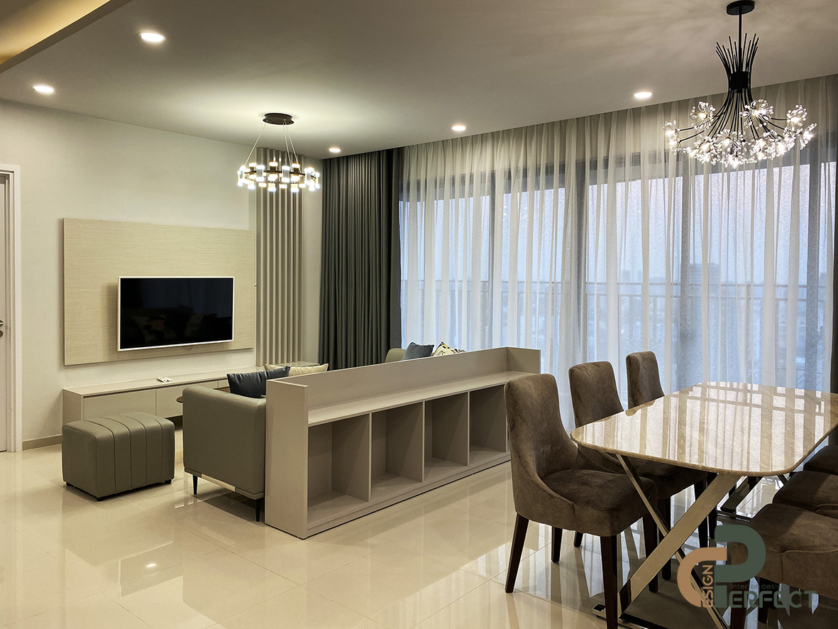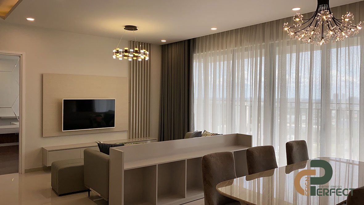 Chúng tôi thiết kế nội thất của căn hộ chung cư The View quận 7 nhằm mang lại không gian sống hiện đại và sang trọng cho gia chủ. Các đường nét tinh tế của sự tối giản và đa năng của phong cách hiện đại đã được chúng tôi thay thế các họa tiết rườm rà, phức tạp. Căn hộ này được chúng tôi sử dụng nhiều các đường nét tinh xảo cùng cách phối màu đơn giản để mang lại điểm nhấn ấn tượng và hút mắt hơn. Hãy cùng Perfect Design chiêm ngưỡng hình ảnh thực tế của căn hộ này trong bài viết dưới đây nhé!