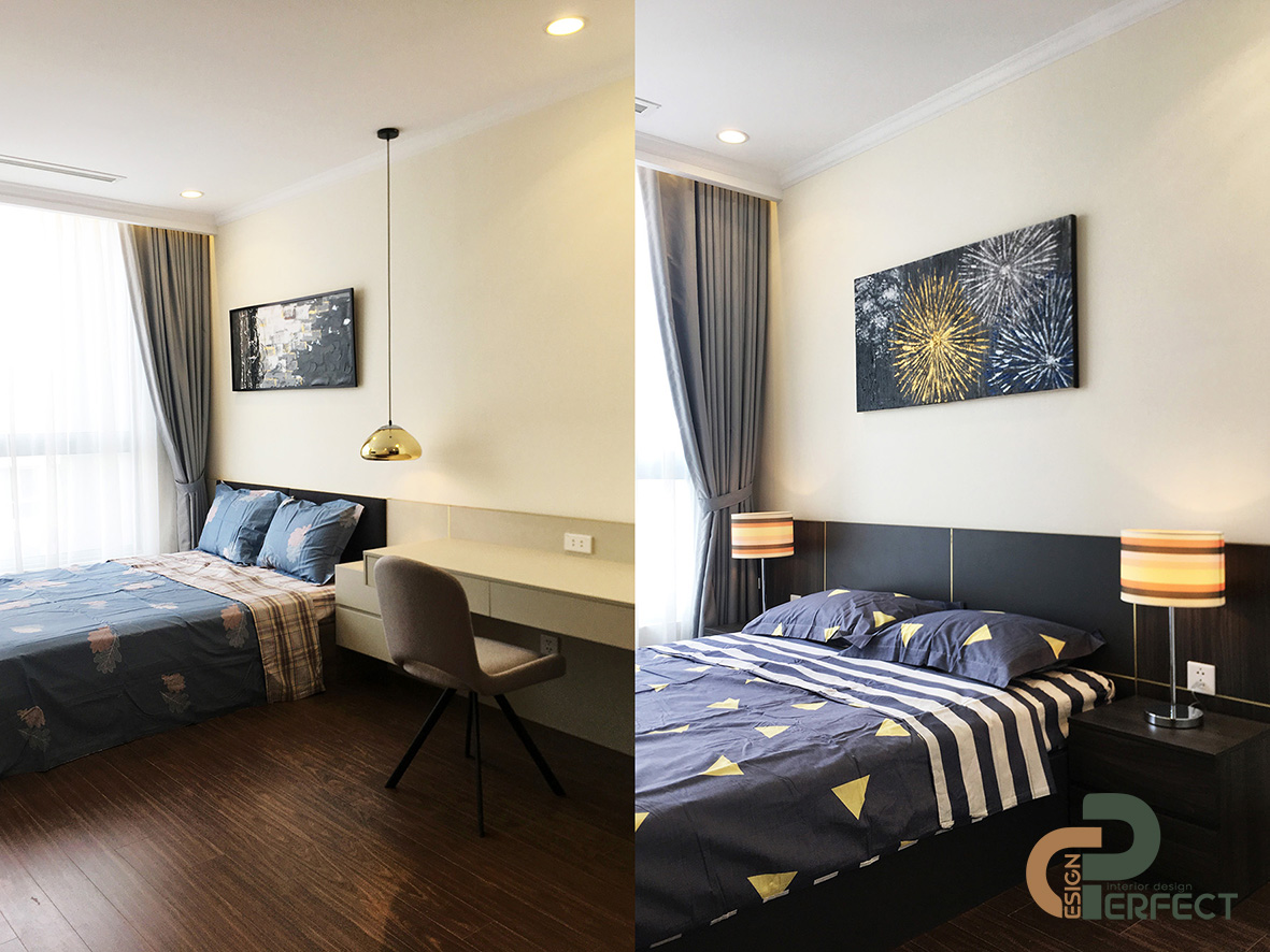 Phòng ngủ được thiết kế vô cùng tinh tế. Chúng tôi đã ưu tiên sử dụng những vật dụng nội thất thông minh được để tối ưu cho không gian này. Điểm nhấn của phòng ngủ chính là bức tranh pháo hoa vô cùng nghệ thuật được treo ở đầu giường. Bàn và đèn ngủ được trang bị 2 bên đã tạo được vẻ đẹp đối xứng cho căn phòng này. Sử dụng rèm 2 lớp đã giúp không gian này tràn ngập ánh sáng tự nhiên, phù hợp với sở thích của gia chủ.