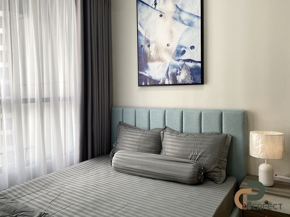 在主卧的设计上,我们依旧采用中性色调,不仅给公寓带来统一的美感,而且在劳累了一天的工作后,在休息时也能带来舒适愉悦的感觉。 床头右侧放置橱柜和夜灯,方便主人睡觉时放置个人物品。