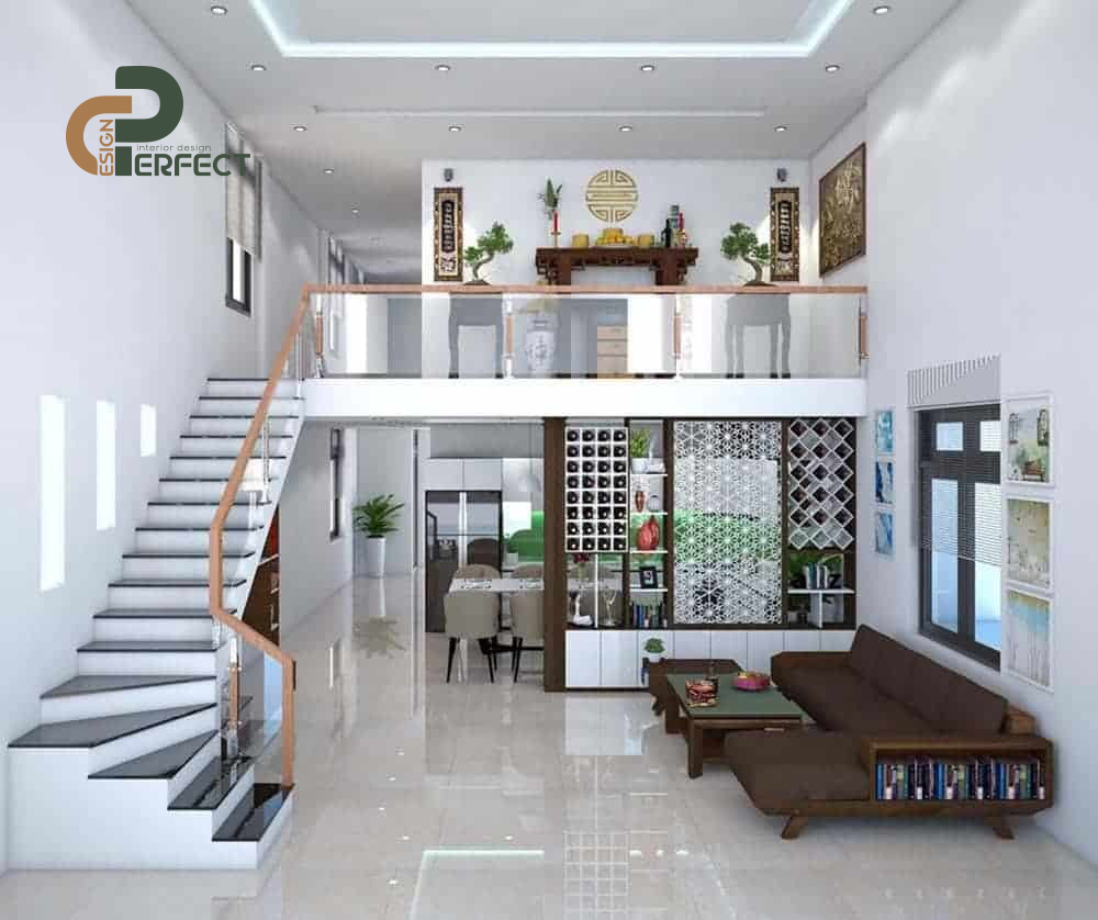 2. Gác lửng được thiết kế làm phòng sinh hoạt chung